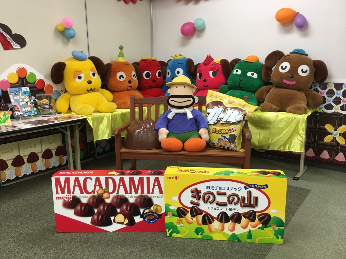 会議室の中にもなじみのお菓子やキャラクターと一緒に写せる記念撮影コーナーがありました。
