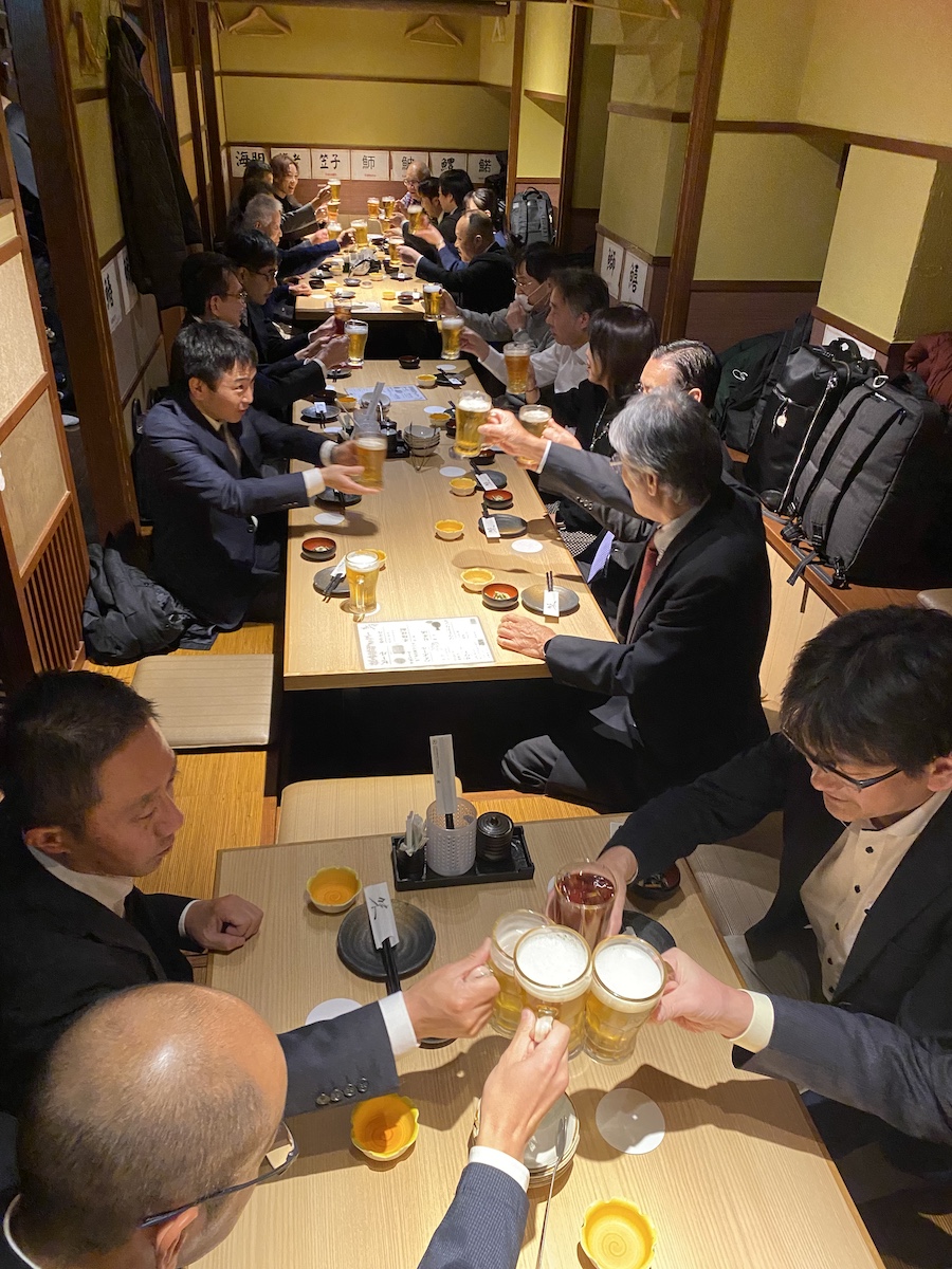 会の終了後、希望者の任意参加でしたが久しぶりに情報交換会(懇親会)が行われました。お互い顔を合わせて話すことで親密度が高まり、人脈が広がります。たくさんの会員が参加され、親睦を深めていただく場をこれからも開催できることを期待しています。