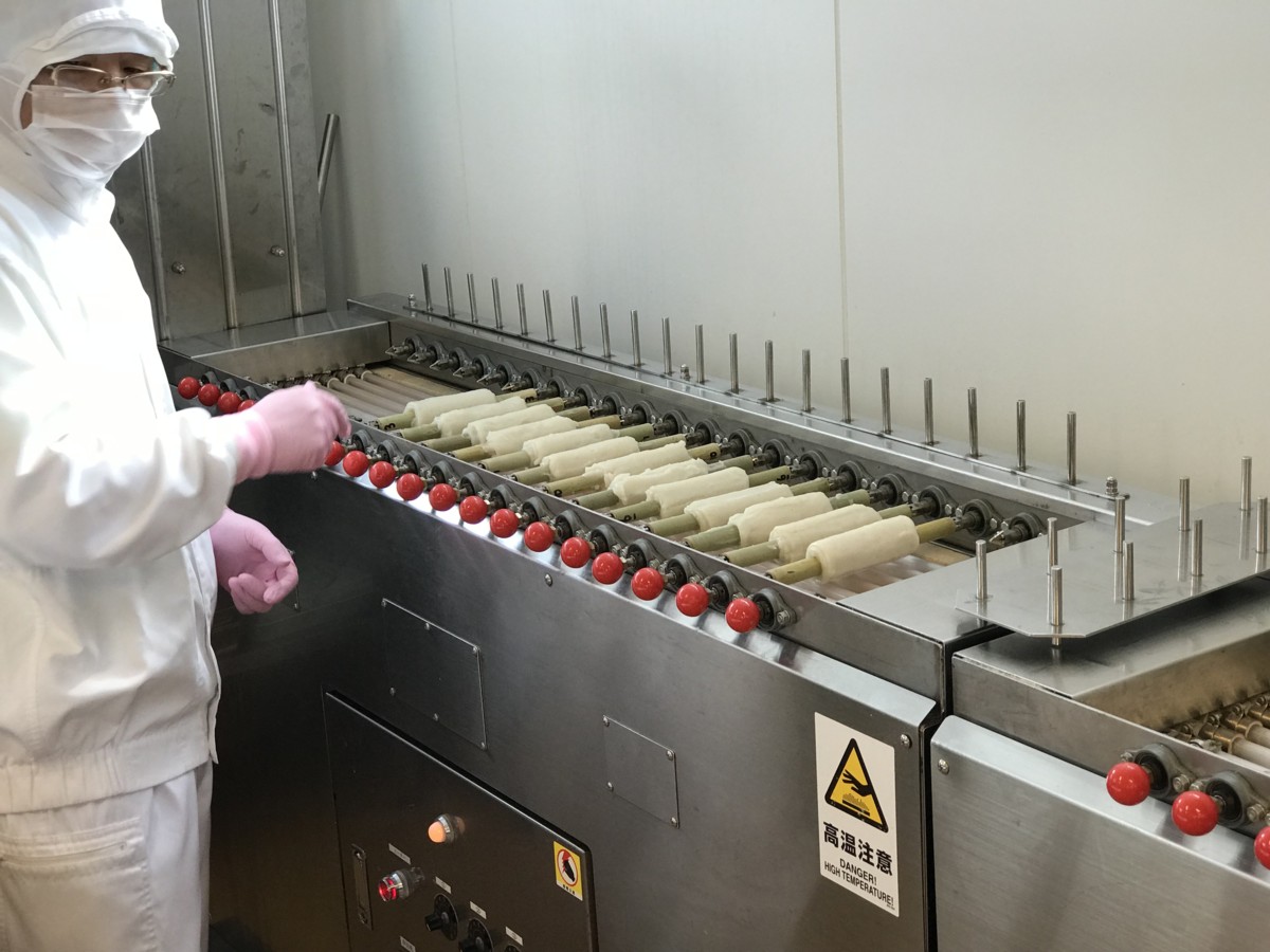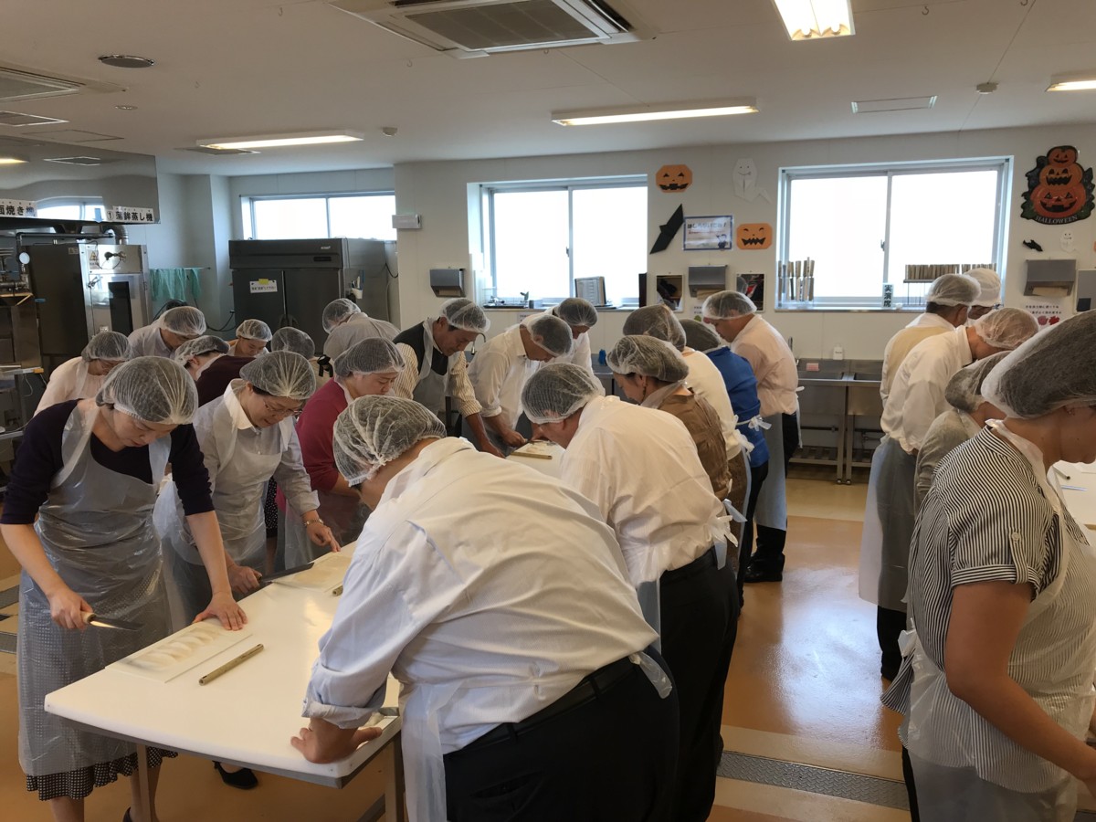 午後からの事例研究会に先立ち、希望者には「てっちゃん工房」にてちくわ作りの体験と工場見学もさせていただきました。
