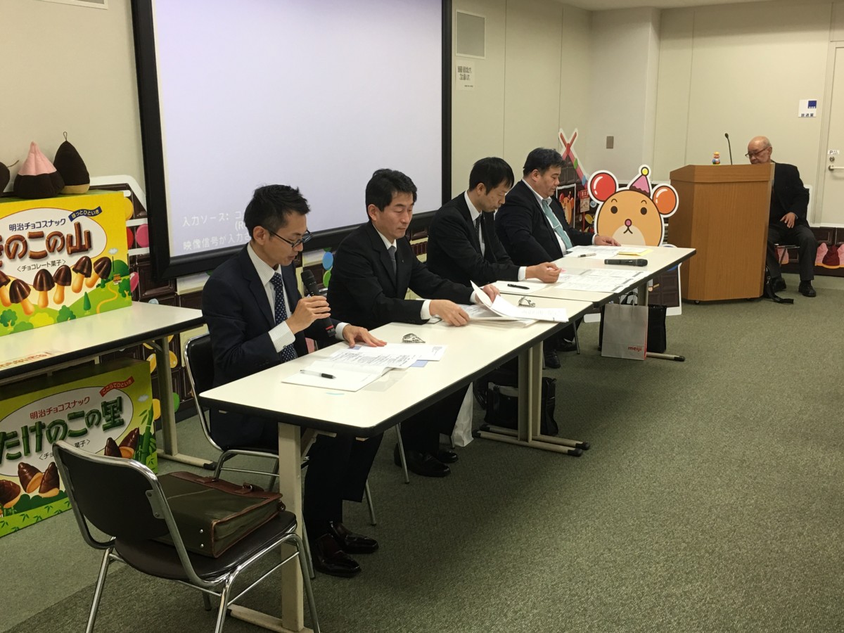 「カール」と「きのこの山」の工場を見学してから、4社による対応事例の発表・紹介があり、事例をもとに熱心な討議が行われました。