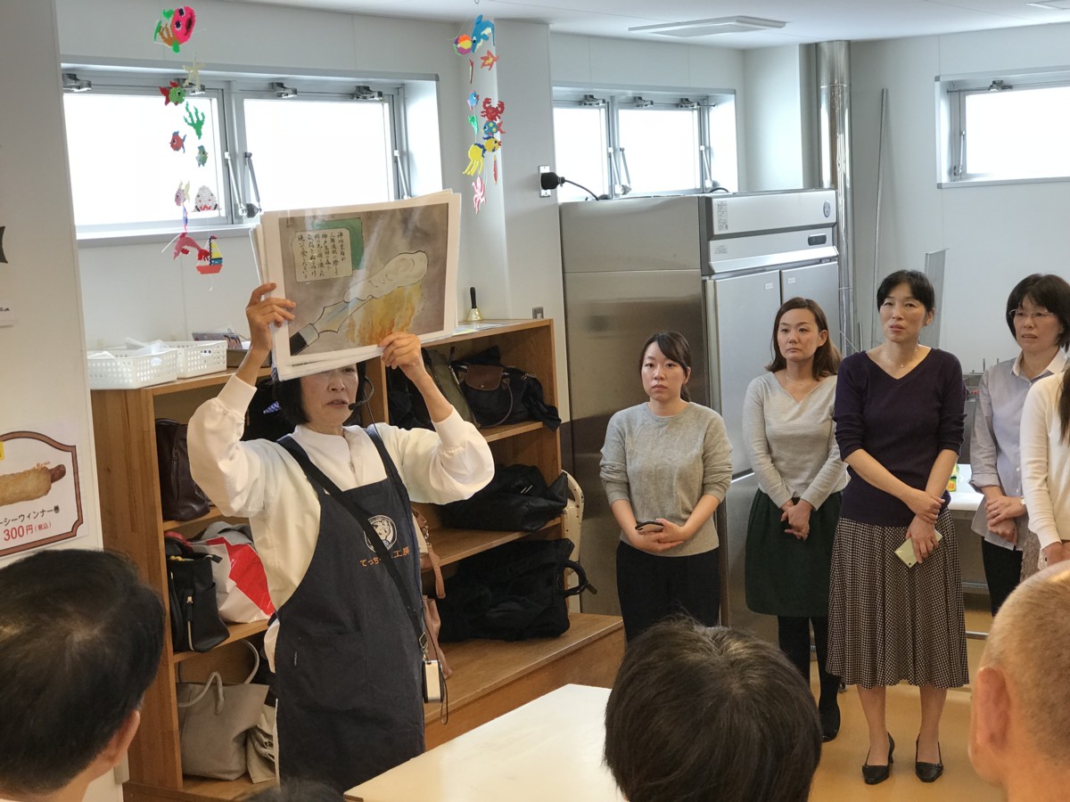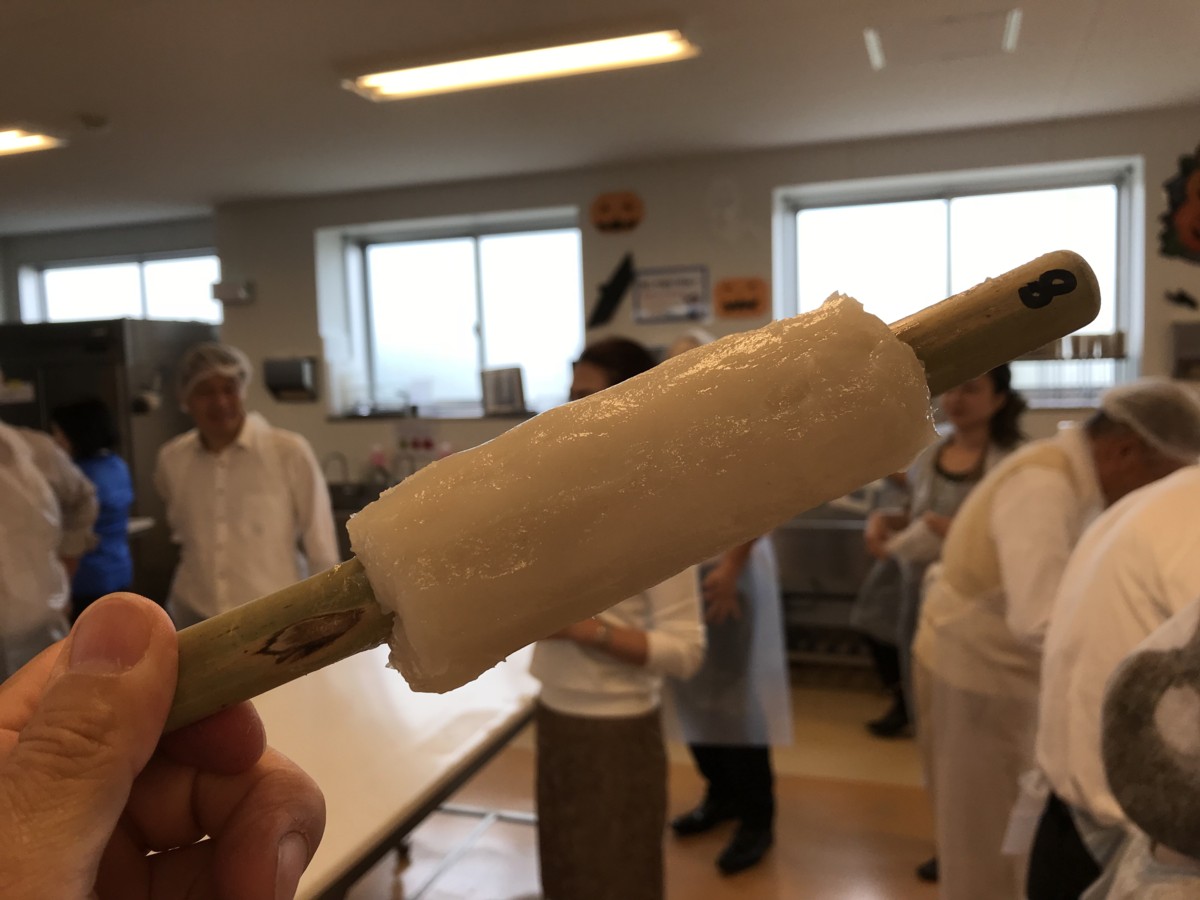 午後からの事例研究会に先立ち、希望者には「てっちゃん工房」にてちくわ作りの体験と工場見学もさせていただきました。