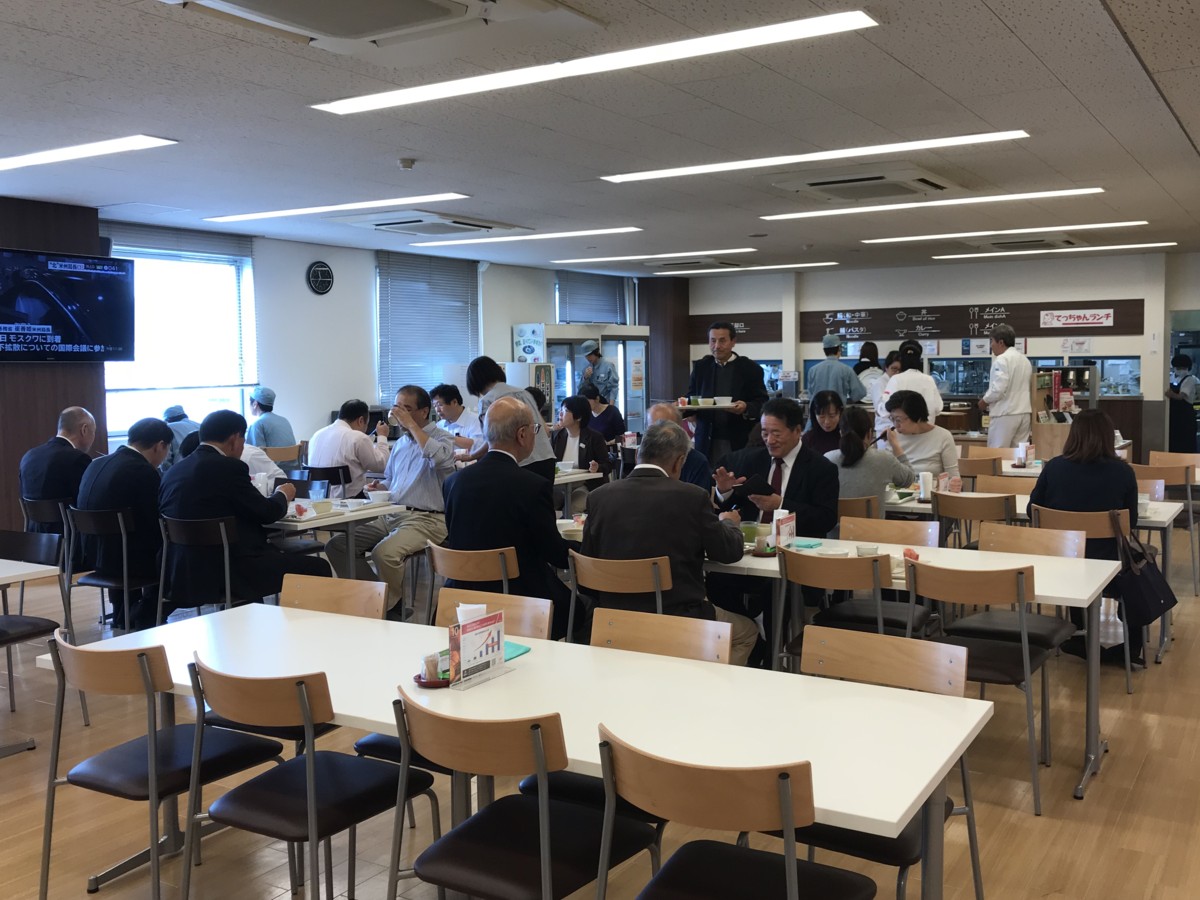 てっちゃん工房での体験に引き続き、工場見学もさせていただき、体験・工場見学の参加者の昼食はカネテツデリカフーズ様の食堂を利用させていただきました。昭和女子大学の先生監修のてっちゃんランチは量も内容もそして肝心の味もとてもよかったです。