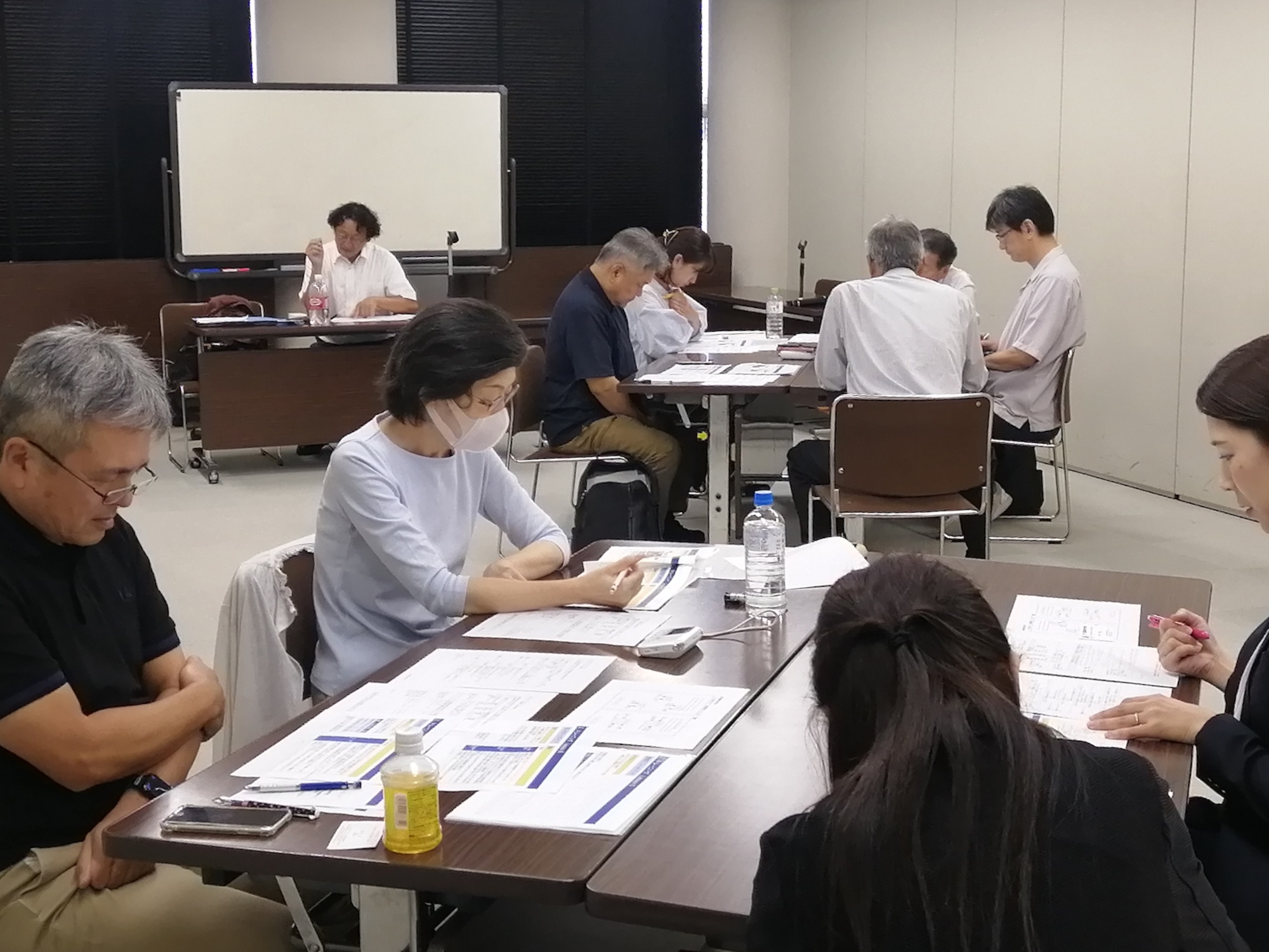 それぞれのスキルのトレーニングでは、練習用の題材が用意され、参加者はスマートフォンのボイスレコーダーで自分の応対を録音し、再生しながら自分の応対について他の参加者や世話人から評価・アドバイスを受け、もう一度応対して、より良い応対になっていることを確かめる、という手順でした。